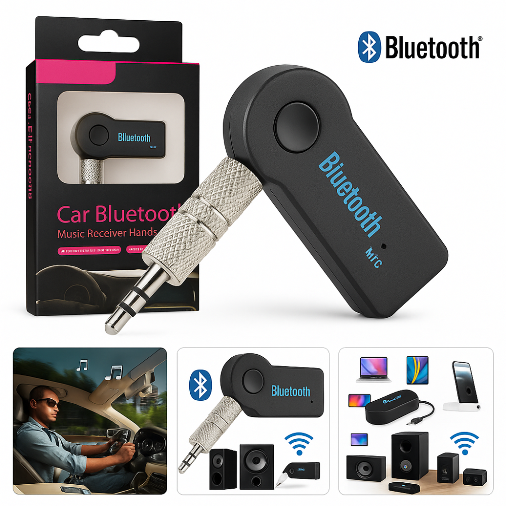 Com o Adaptador e Receptor Bluetooth 3.0 B02, você transforma qualquer som automotivo, rádio antigo, caixa de som, DVD automotivo ou aparelho 3 em 1 em um sistema moderno com tecnologia sem fio. Conecte seu celular ou tablet e reproduza suas músicas favoritas sem depender de rádio FM ou internet — basta que as músicas estejam armazenadas no seu aparelho ou acessíveis por aplicativos como Spotify, Deezer, YouTube, etc.